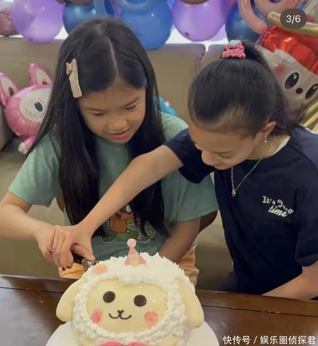 切蛋糕那会儿,是大女儿牵着妹妹的手,一起握着刀子把蛋糕切开,懂得钟丽淇家庭情况的网友们,看了都忍不住湿了眼。
